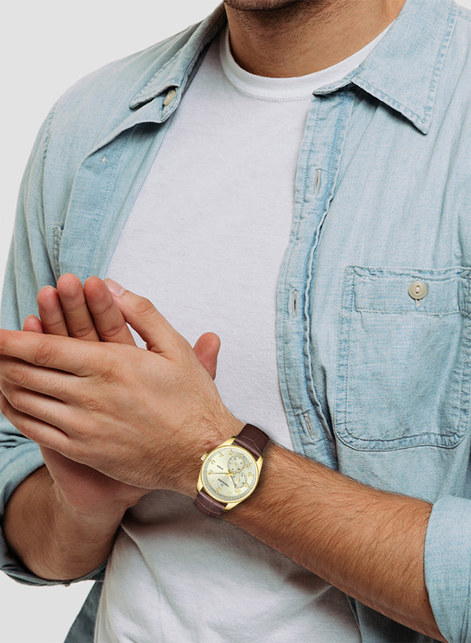TORNADO Men's Multi Function Champagne Dial Watch - T25102-GLDC