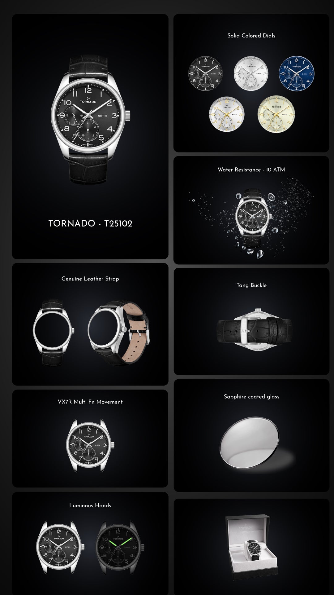 Tornado watch is a contemporary timepiece specially designed exclusively for men's uniquely flair and edgy function that go beyond just telling time. Select from classic to chronograph modes, It works perfectly with utmost precision and versatility making it suitable for your daily trend.