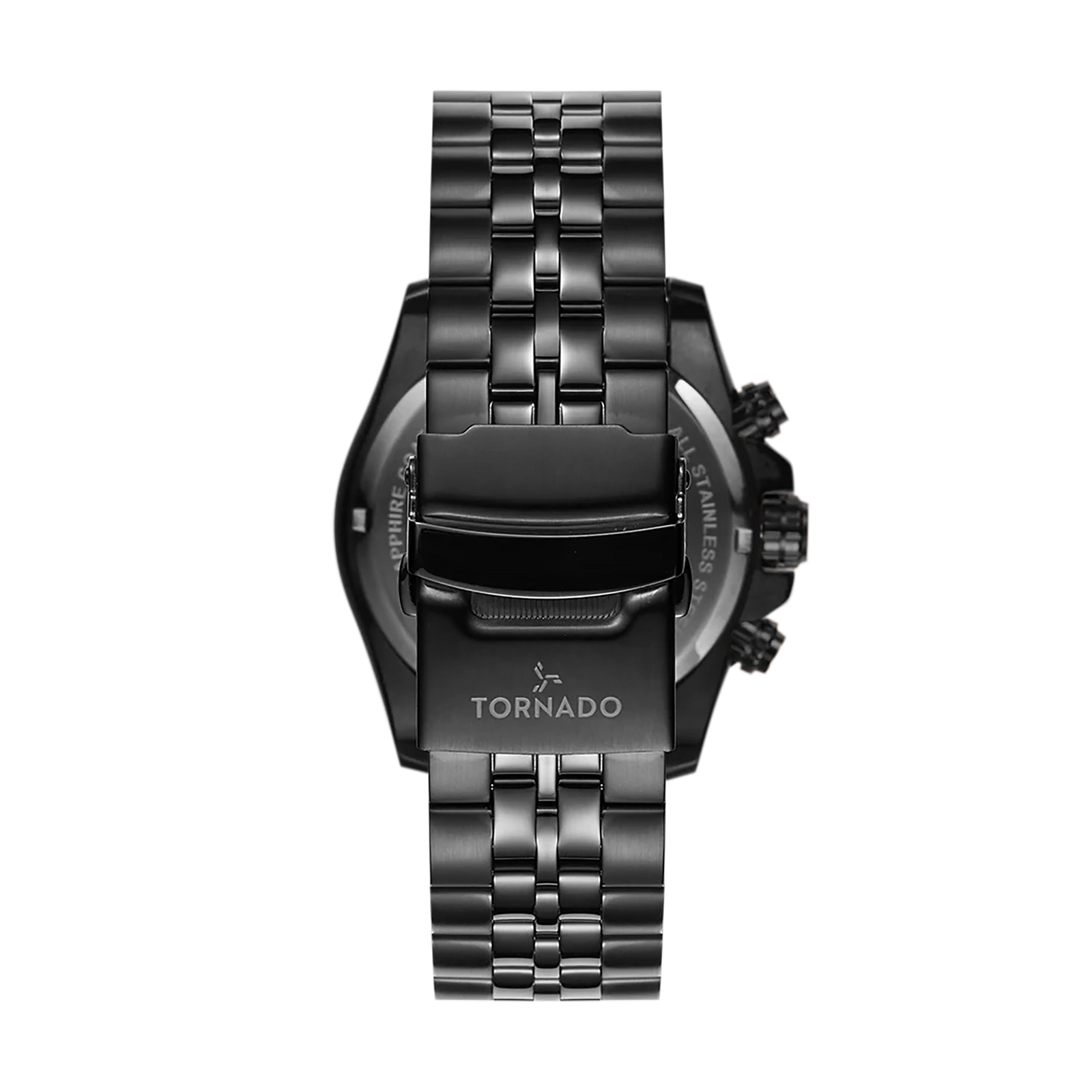 Tornado Celestia Chrono Men's Chronograph Watch with blue dial, black case and strap. Japan Quartz chronograph movement, sapphire coated glass, 10ATM water resistant. 3-year warranty included.